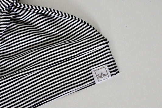 Neugeborenenmütze – Top-Knoten – Multi Black Stripe